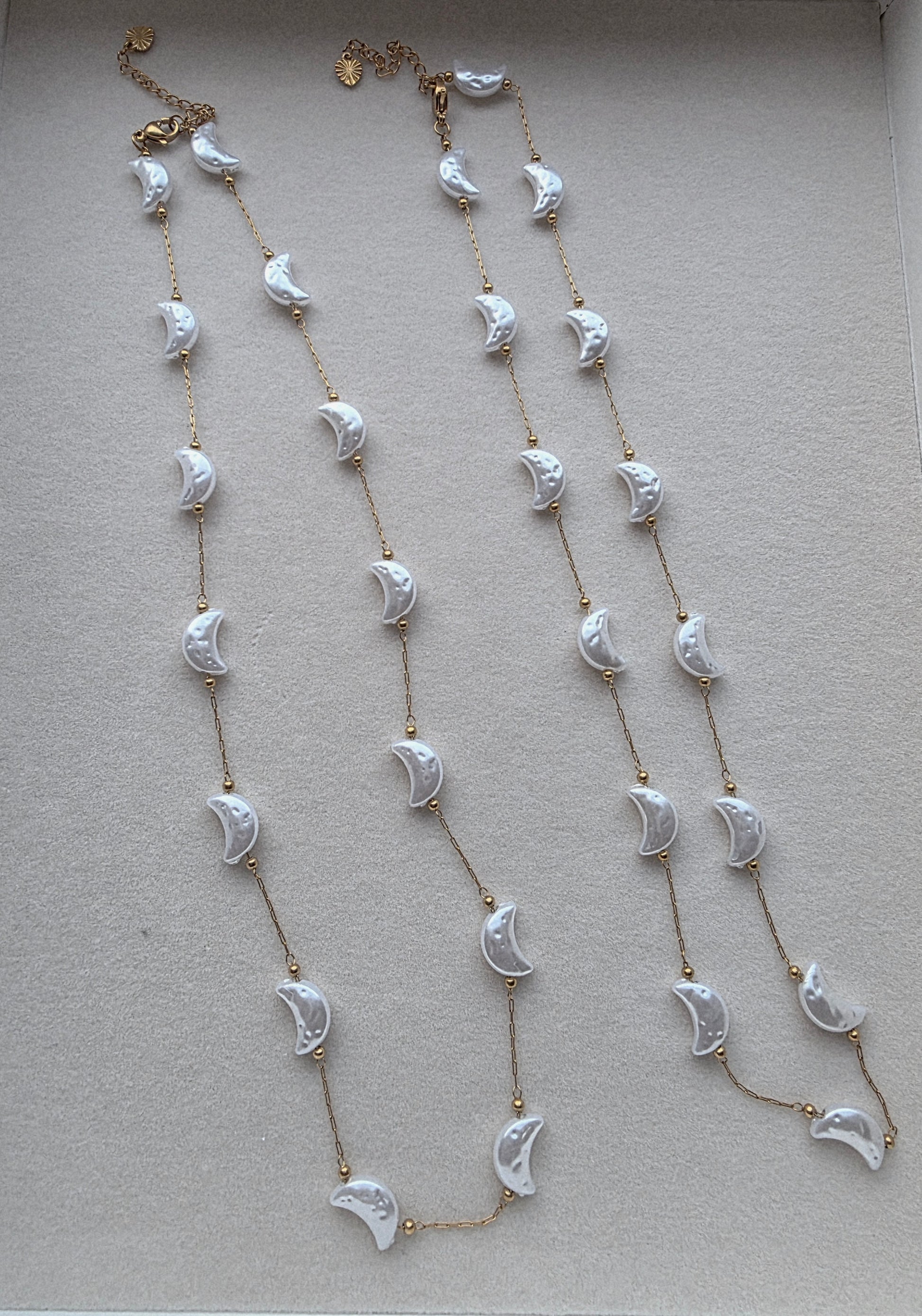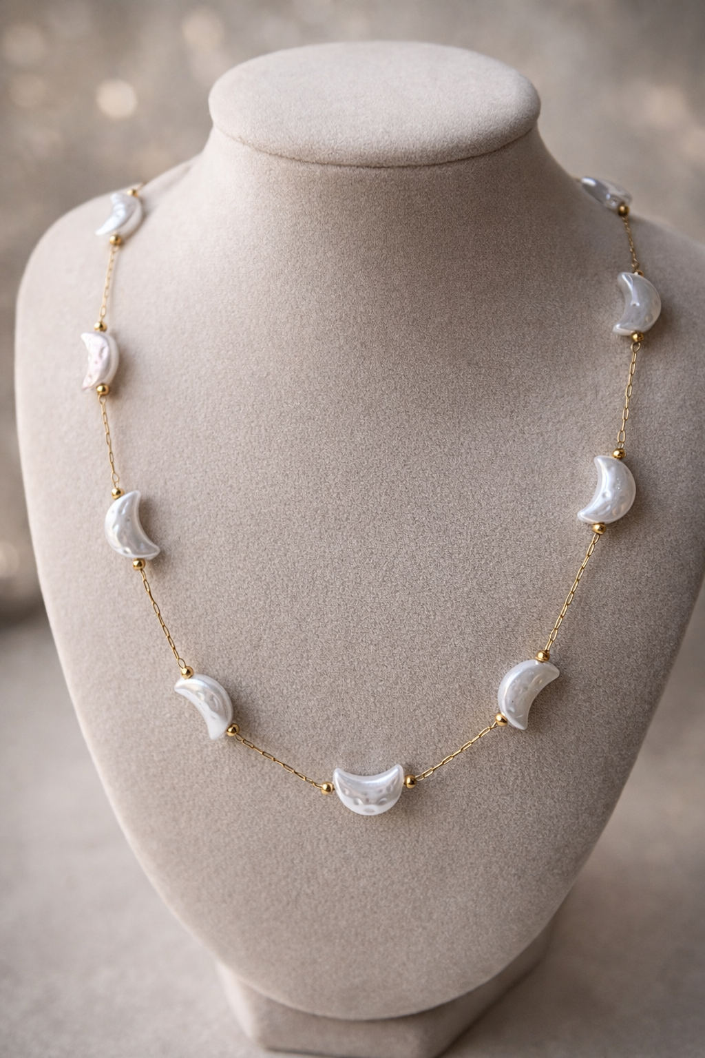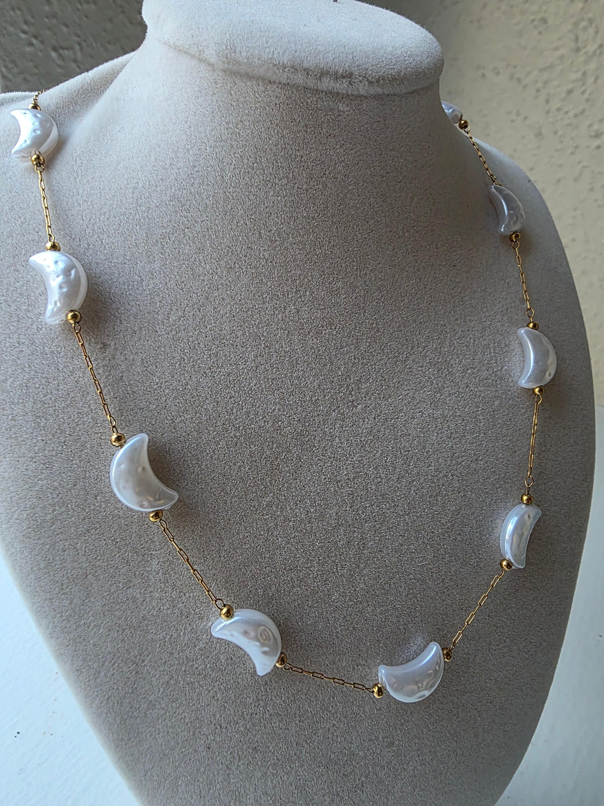 Beautiful and elegant moon-shaped pearl necklace, perfect for everyday wear or special occasions.